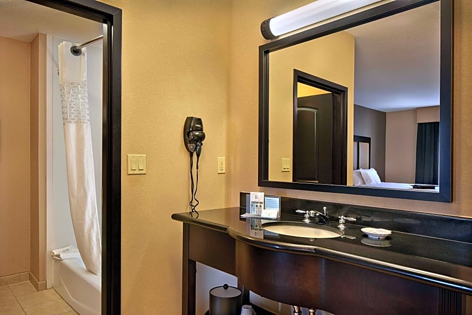 Any corresponding photo may not reflect the specific accessible room type or room feature. This mobility accessible, nonsmoking room features one king sized bed , and an accessible bath tub. The room features comfortable soft seating, a HDTV, and easy to operate alarm clock/radio. The free high speed internet access will help you stay connected while on the road. If you prefer not to work at the desk, you can use the convenient lapdesk instead. You'll also enjoy the convenience of having a coffee maker with tea service and iron/ironing board in your room.